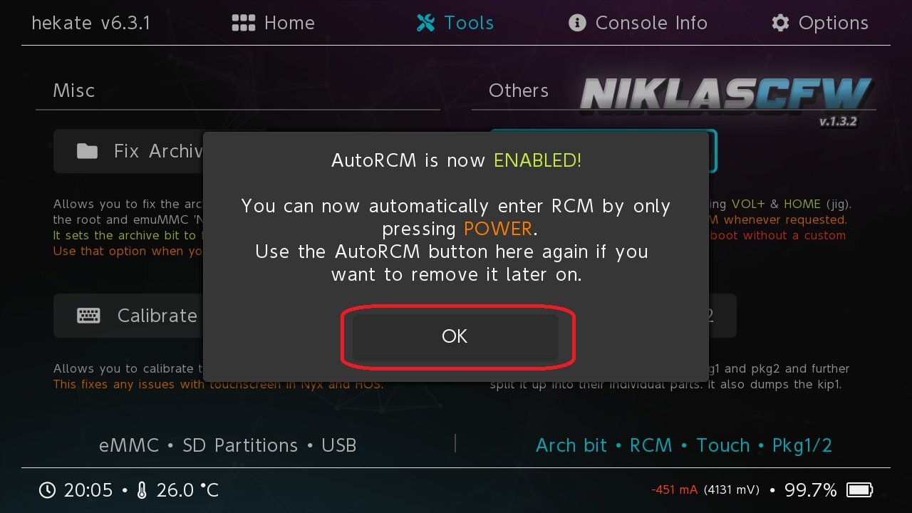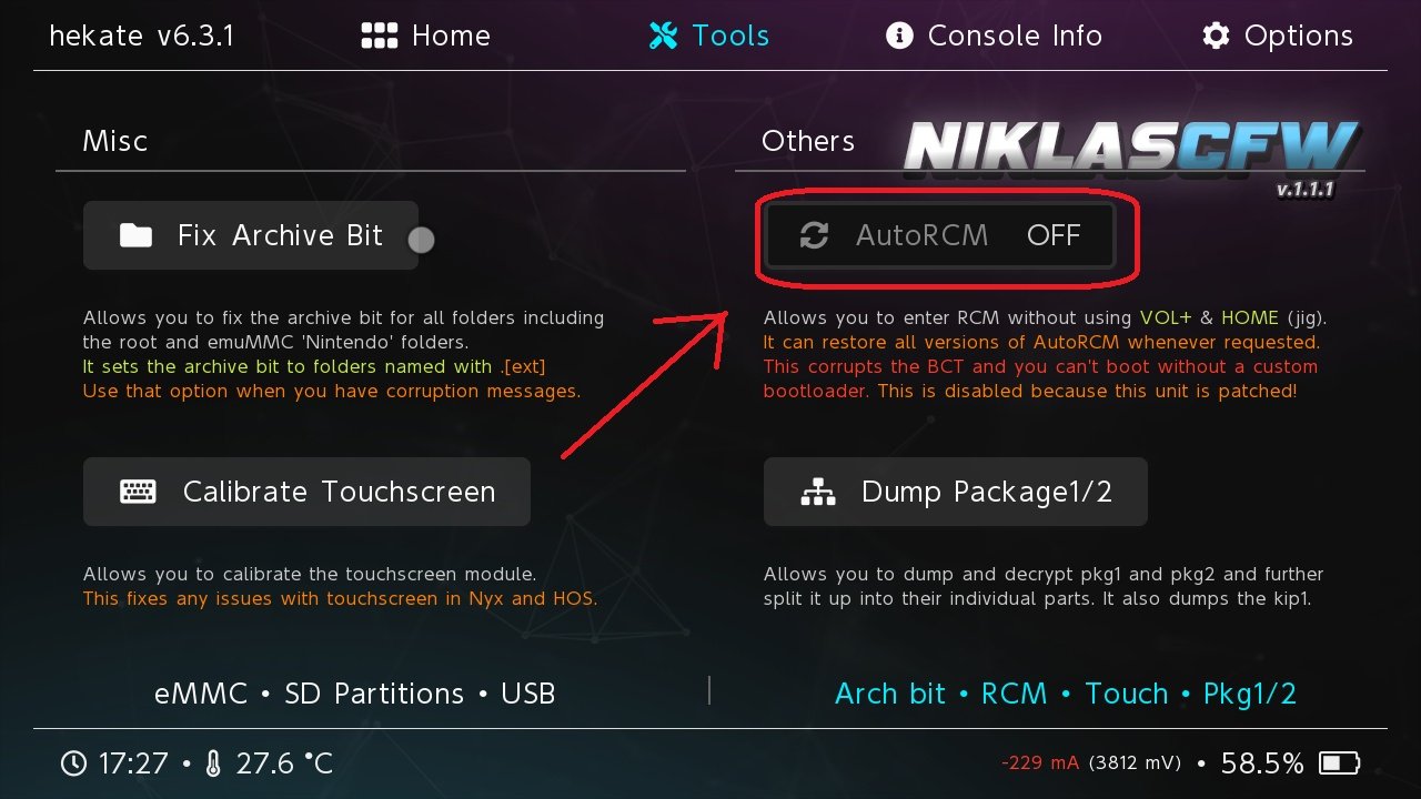 Nun startet die Switch jedes Mal direkt in Hekate mit der RCM Methode.