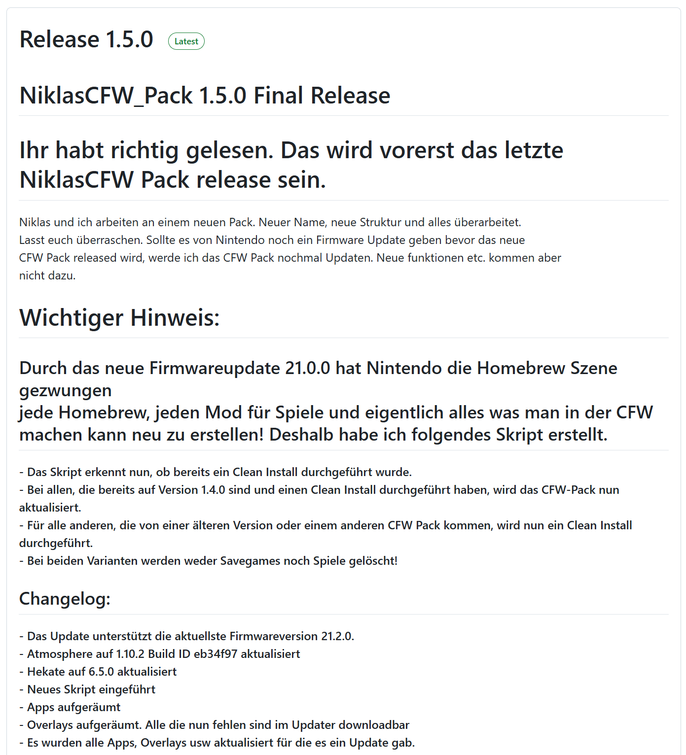 FW 21.2.0 kompatibel. Der emuMMC bleibt unberührt. Das heißt, dass Spielstände, Spiele und Einstellungen (sofern vorhanden) erhalten bleiben.