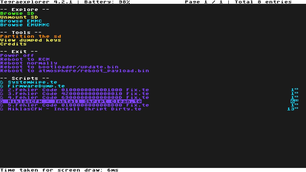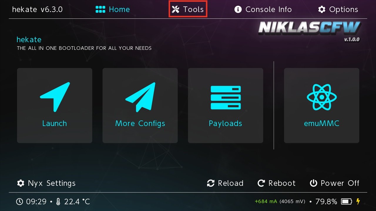 - prod.keys sollten vor der Installation mit LockPick_RCM gedumpt werden (falls noch nicht vorhanden)