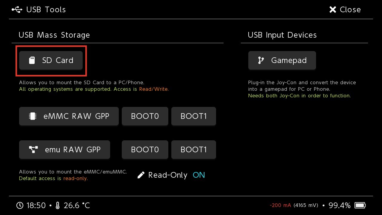 - Gehe zu Tools → USB Tools → SD Card