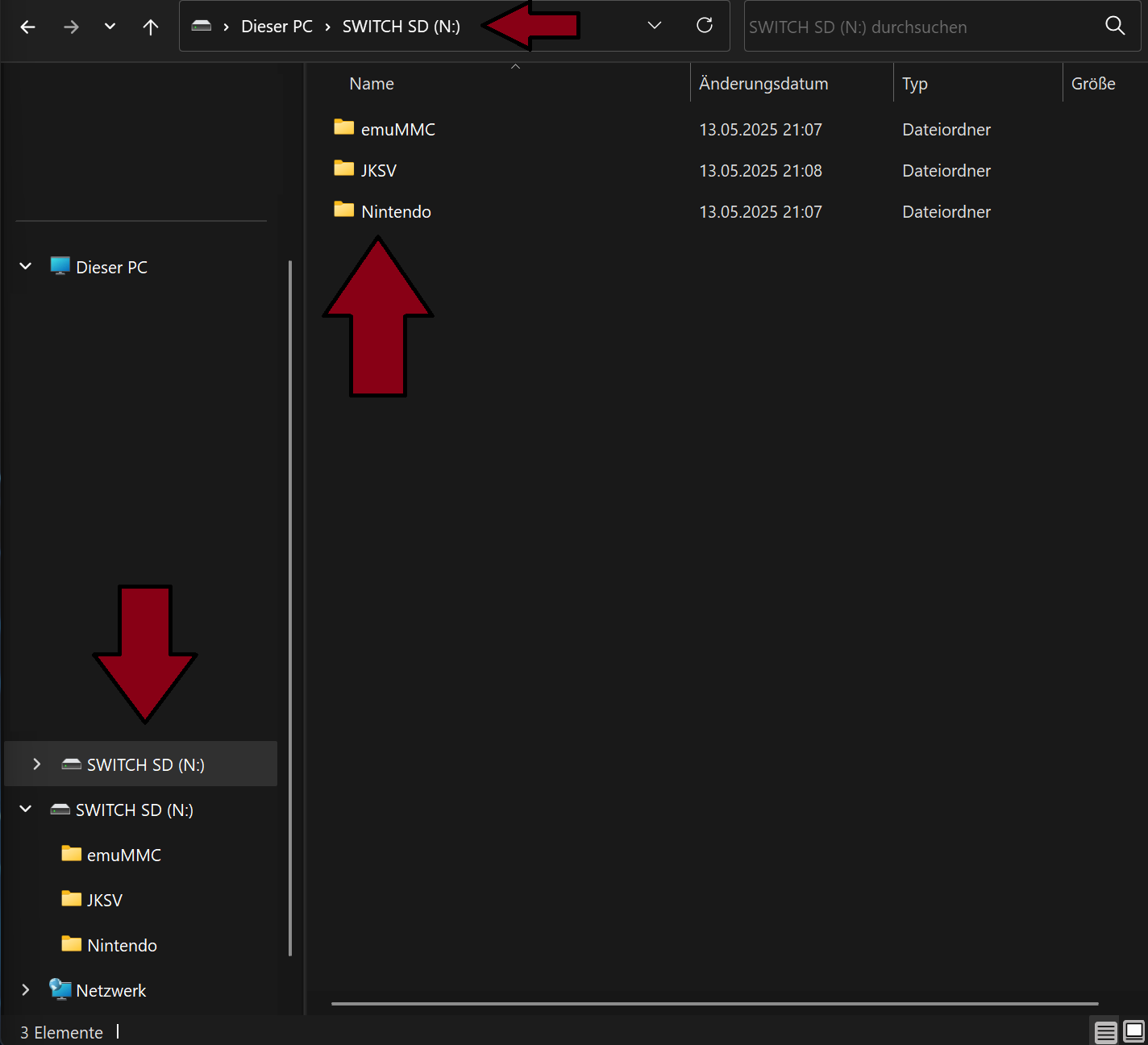Falls gewünscht, lösche alles außer emuMMC, JKSV und Nintendo. -