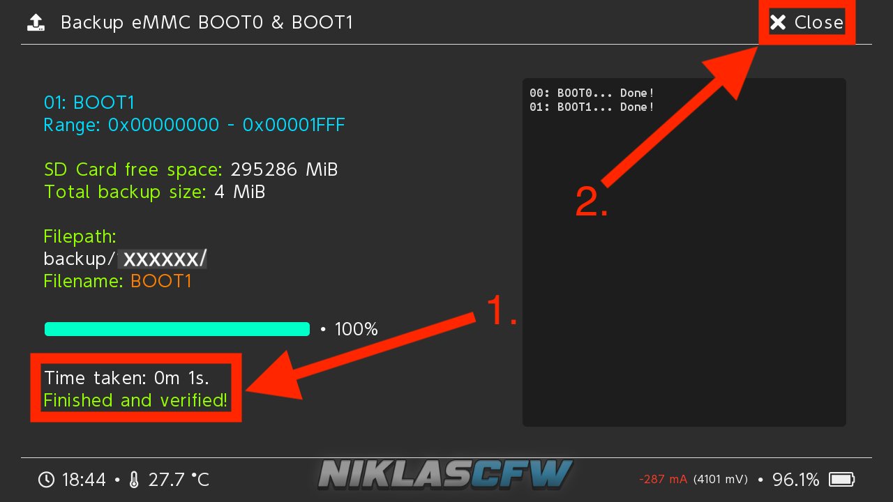 Ist das Backup erstellt, drücke oben rechts auf Close