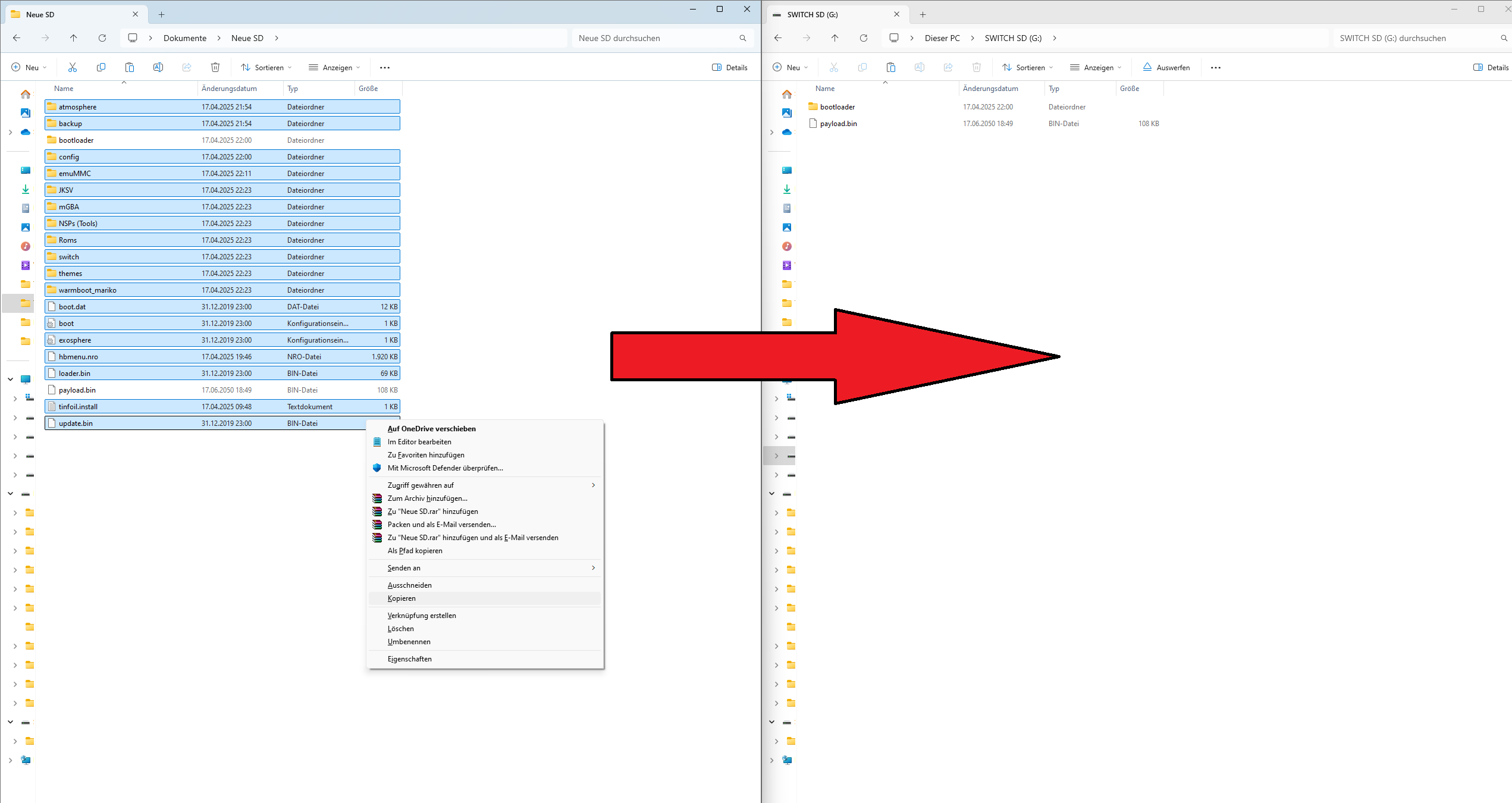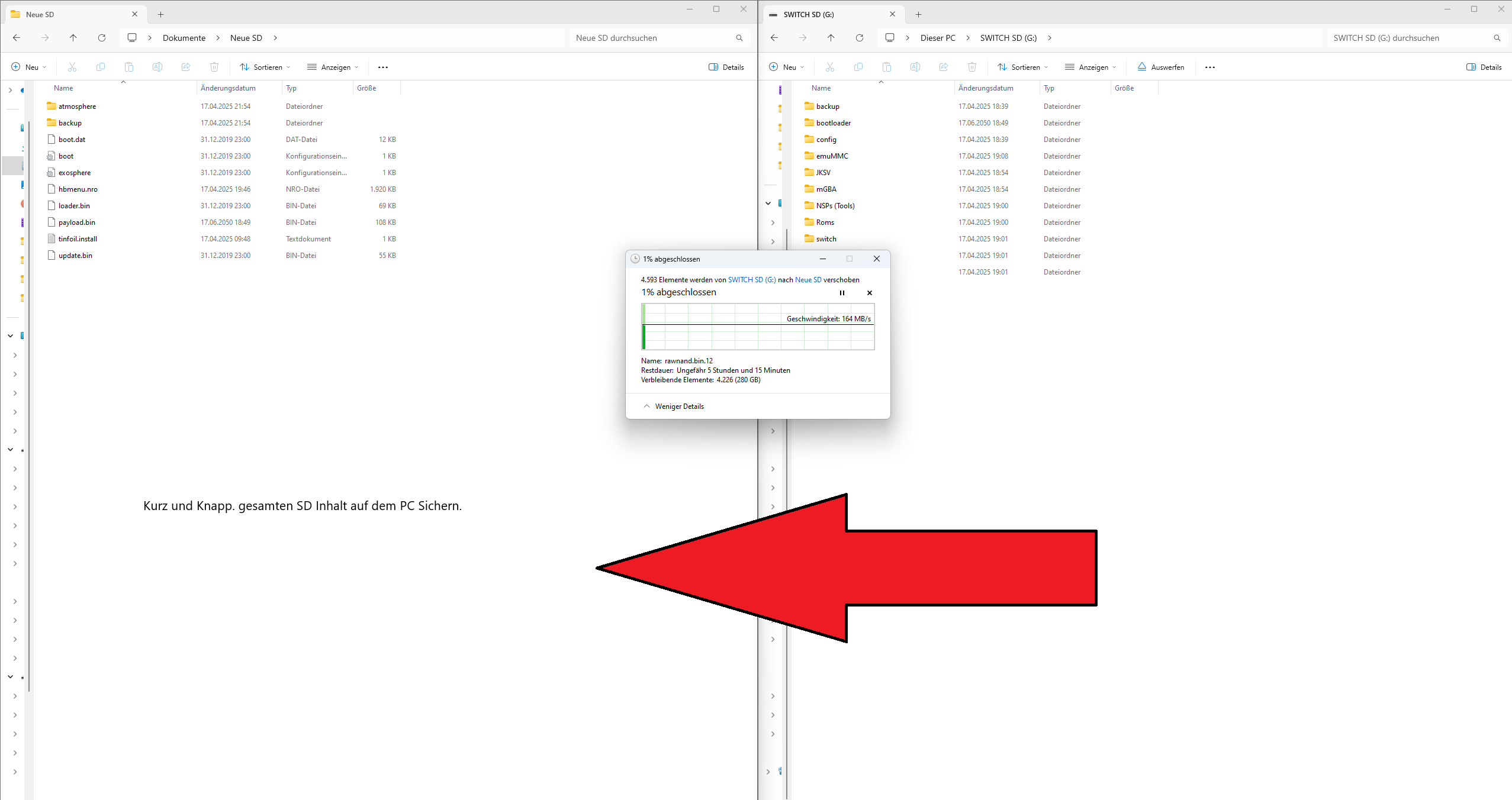 Hinweis Das Video Zeigt den Weg wenn man die SD für das schnellere kopieren lieber aus der Switch entnimmt.