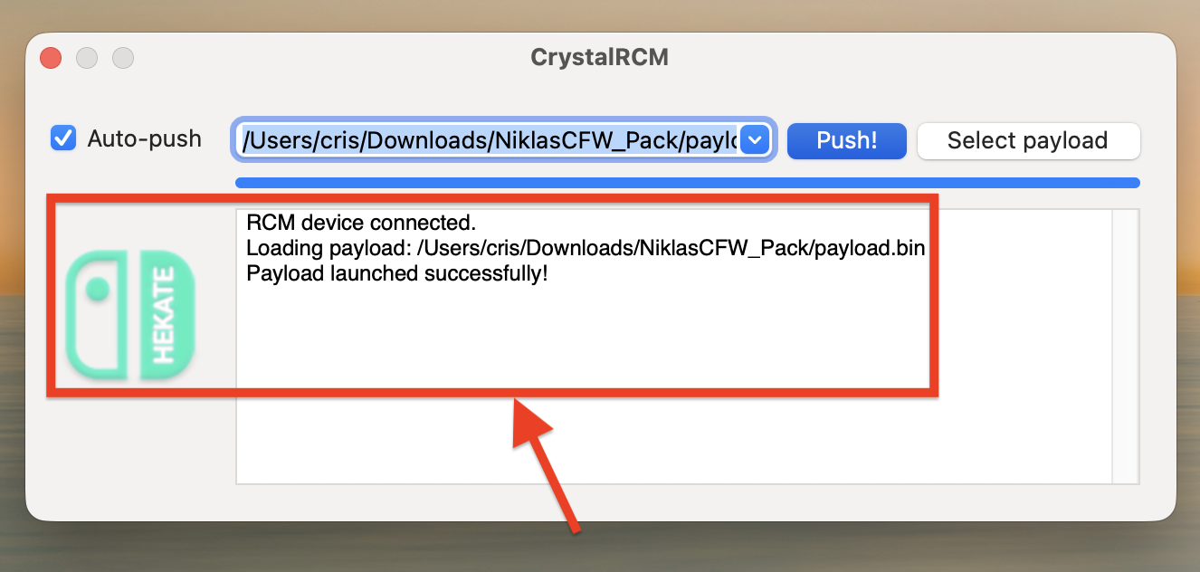 payload.binaus dem NiklasCFW Pack aus und klick anschließend auf Push! um die Payload an deine Switch zu schicken.