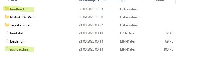 - Entnehme den bootloader Ordner und die payload-Datei aus deinem Pack.
